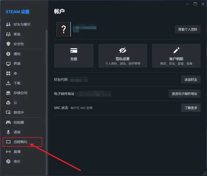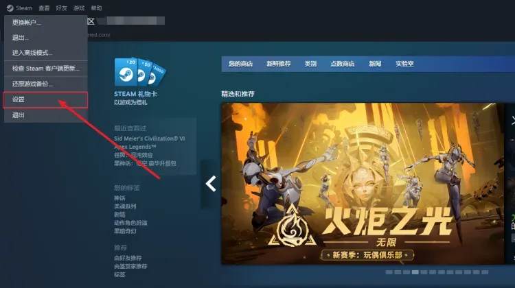 在电脑上打开steam,并登录,打开设置