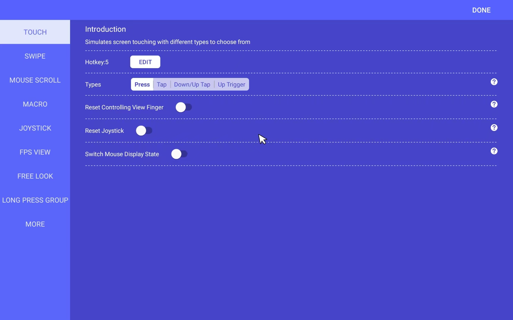 3.If no preset exists, add controls manually: Open the "Editor" section and double-tap on a blank area to create a new key.