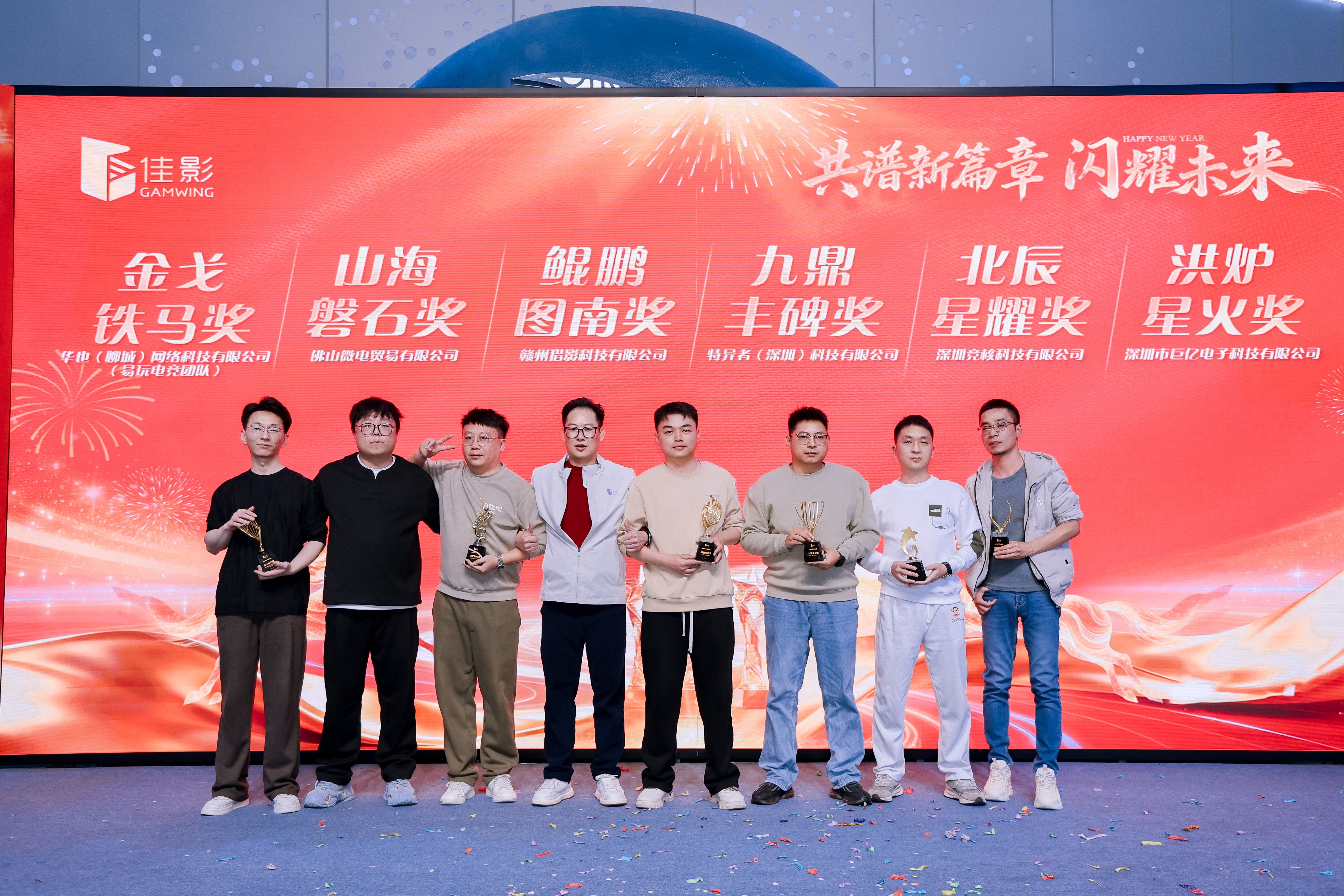 表彰与公司紧密协作的优秀合作伙伴,六大奖项及获奖名单如下:金戈铁马奖:华也(聊城)网络科技有限公司(易玩电竞团队)
